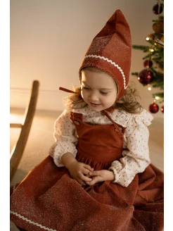 Чепчик новогодний, шапочка с ушками фланелевый