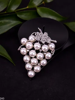 Брошь Гроздь Винограда с жемчугом майорика и цирконами