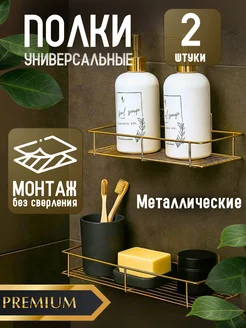 Золотые полки 2 шт на липучках прямые для ванной и кухни