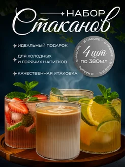 Набор стаканов стеклянных высоких 4 шт для коктейлей