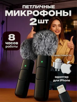 Микрофоны беспроводные петличные с ветрозащитой 2шт