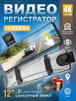 Видеорегистратор для автомобиля зеркало с wifi 4k 2 камеры