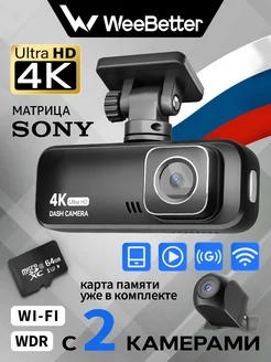 Видеорегистратор для автомобиля с wifi 4k 2 камеры