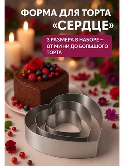 Форма для выпечки тортов Сердце набор 3 шт. металлическая