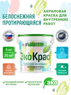 Краска для стен белая без запаха быстросохнущая 5 кг