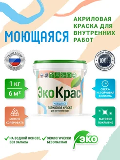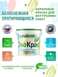 Краска для стен моющаяся белая быстросохнущая 1 кг