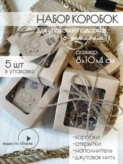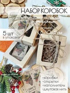 Набор 5 шт. крафтовых картонных подарочных коробок 8х10х4