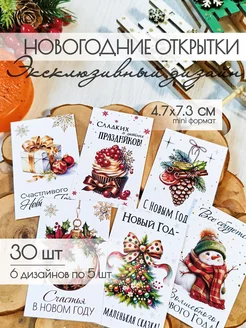 Набор новогодних праздничных мини-открыток 30 шт. 4,7х7,3 см