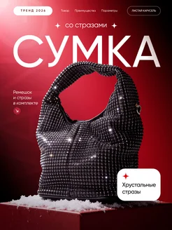 Сумка клатч вечерний со стразами серебристая