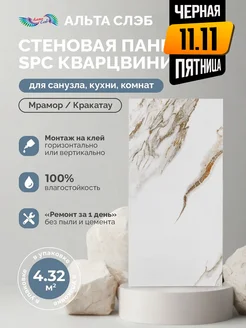 Стеновые панели SPC Кварцвинил Мрамор Кракатау 30х60см