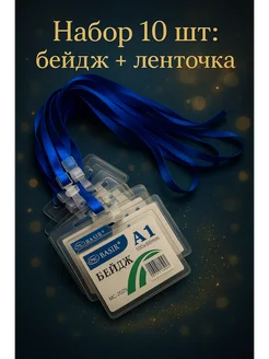 Набор бейджей А2 с ленточками пластиковые прозрачные 10 штук