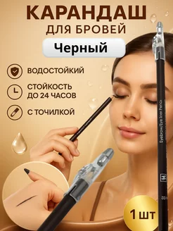 Карандаш для бровей черный водостойкий с точилкой стойкость…