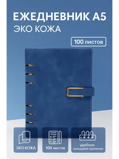 Ежедневник недатированный А5 из эко кожи, на кольцах