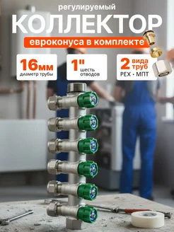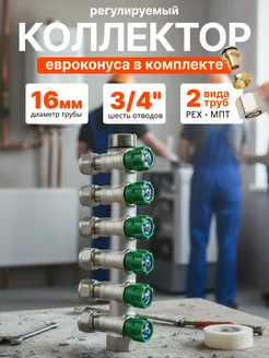 Коллектор для воды тёплого пола 6 контуров с уплотнителем