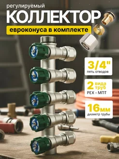 Коллектор для воды тёплого пола 5 контуров с уплотнителем