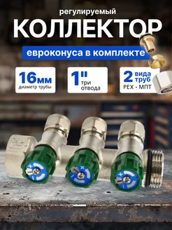 Коллектор для воды тёплого пола 3 контура с уплотнителем