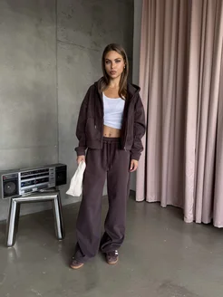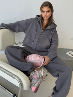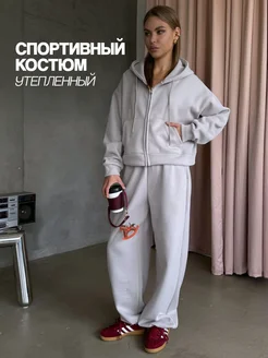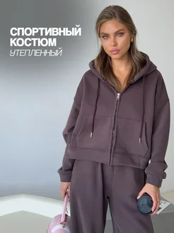 Утепленный спортивный костюм на молнии зип худи и джоггеры