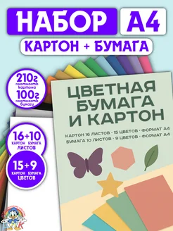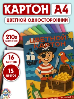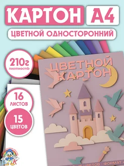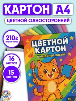 Цветной картон для школы А4 односторонний 16 л 15 цв в папке