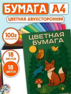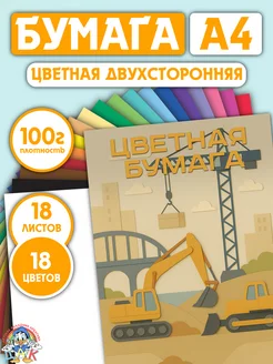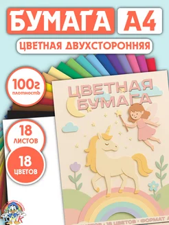 Цветная бумага двухсторонняя А4 18 цветов 18 листов