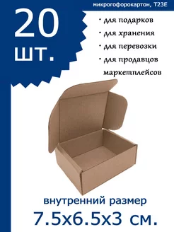 Коробка картонная самосборная, 7,5х6,5х3 см, 20 шт