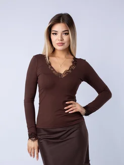 Лонгслив с кружевом облегающий