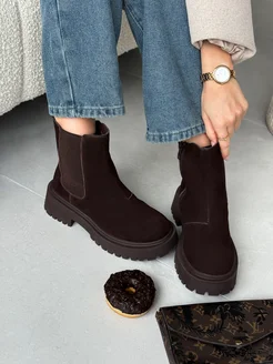 Ботинки челси зимние замшевые