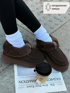 Угги низкие замшевые зимние с мехом