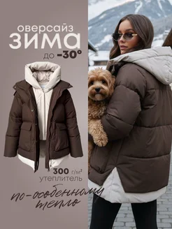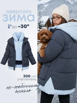 Куртка зимняя удлиненная с капюшоном оверсайз