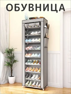 Обувница в прихожую закрытая узкая тканевая многоярусная