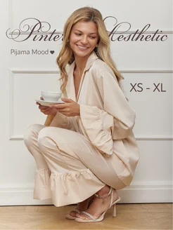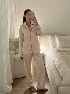 Пижама шелковая со штанами и рубашкой домашний костюм