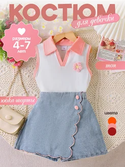 Костюм детский джинсовый, топ и юбка- шорты двойка