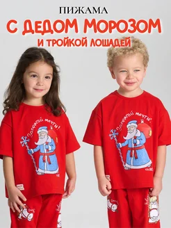Пижама детская новогодняя С Дедом Морозом и лошадьми