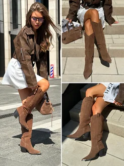 Сапоги казаки высокие демисезонные натуральная замша
