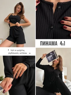 Пижама со штанами, шортами и топом комплект 4 в 1