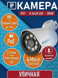 Уличная IP камера видеонаблюдения 4 Мп с 2.8, DUAL, POE mic