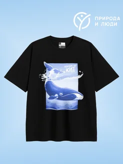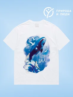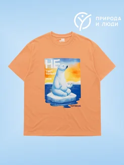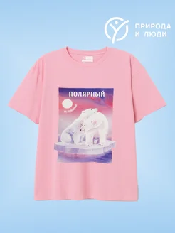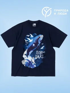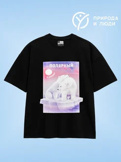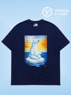 Футболка оверсайз темно-синяя с принтом Белый медведь
