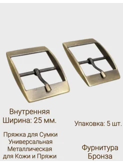 Пряжка для сумки бронза 25 мм. металлическая универсальная