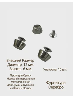 Пукля для сумки серебро металлическая ножка 12х6 мм