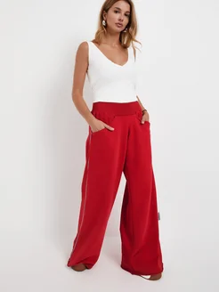 Брюки WEST палаццо, премиум хлопок, спорт шик, пич эффект
