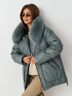 Пуховик зимний удлиненный с мехом с капюшонои