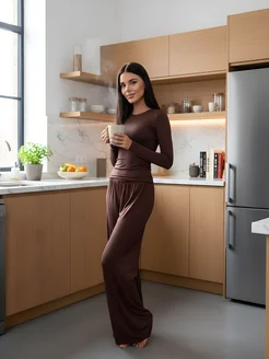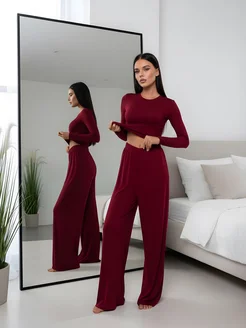 Костюм домашний трикотажный с лонгсливом свободные брюки