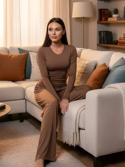 Костюм домашний трикотажный лонгсливом свободные брюки