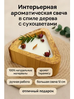 Свеча восковая ароматическая в спиле дерева большая