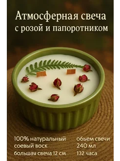 Свеча большая интерьерная с розой и папоротником