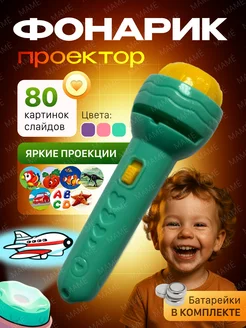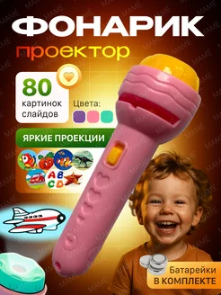 Фонарик проектор детский с 80 картинками слайдами