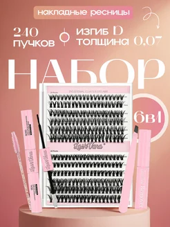 Набор накладных ресниц с клеем, пучки D 240 шт