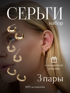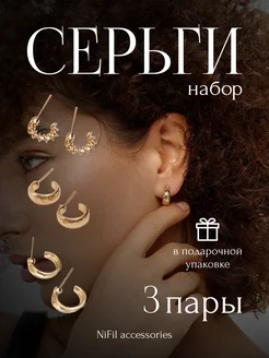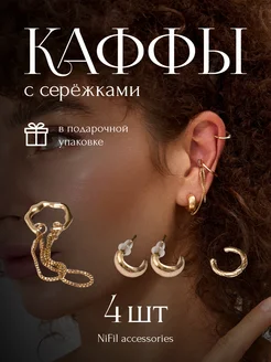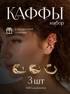 Серьги каффы без прокола ( набор 3 штуки ) золотистые