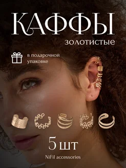 Серьги каффы без прокола ( набор 5 штук ) золотистые