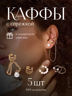 Серьги каффы без прокола ( набор 5 штук ) серебристые