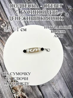 Подвеска брелок оберег с бусиной Дзи Денежный крючок